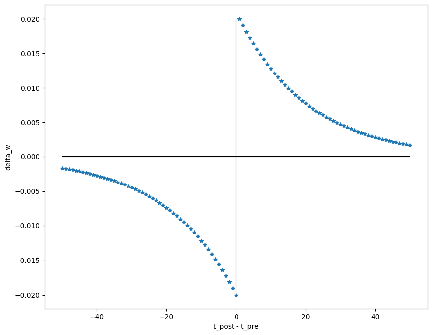 pre_times = np.linspace(100.0, 0.0, 101)weight_changes = []